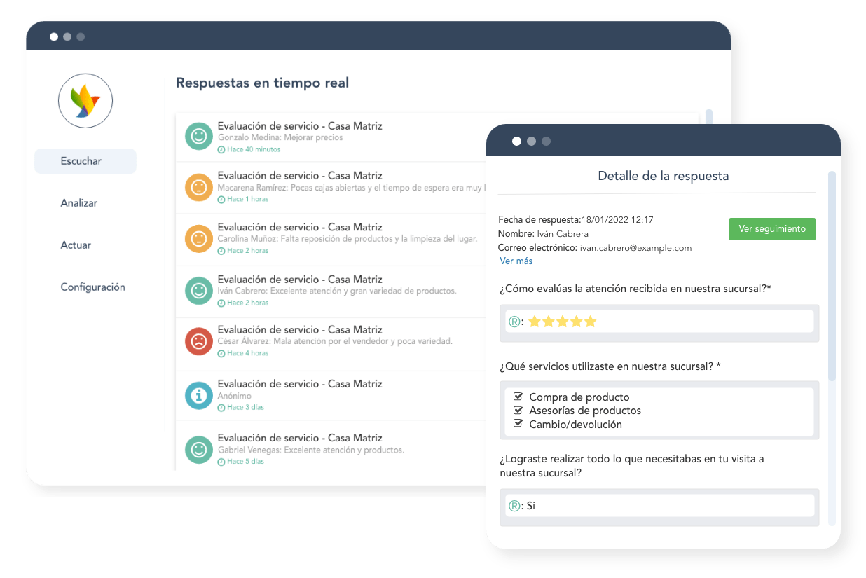 ¡No te pierdas ni un solo detalle! Con nuestra sección «¿Qué está pasando?» podrás estar en contacto con las opiniones de tus clientes en tiempo real y tomar decisiones instantáneas para mejorar su experiencia.
