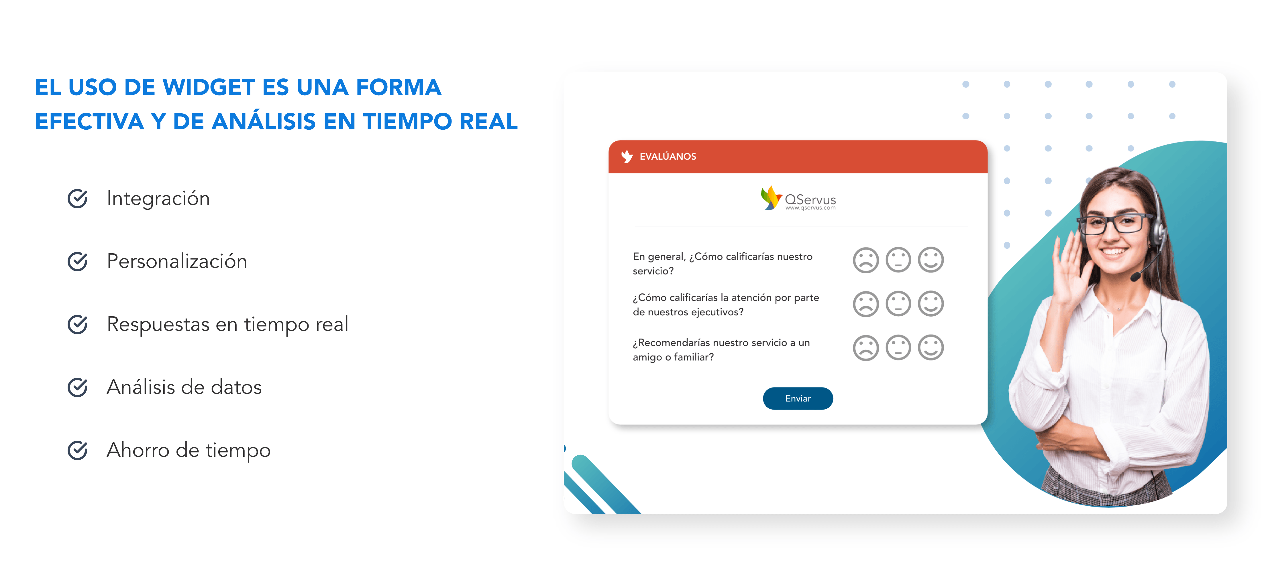 En QServus, estamos liderando la revolución del Customer Real Time Feedback impulsado por IA para incrementar la lealtad de tus clientes, proporcionando a las empresas herramientas que mejoren la calidad de su servicio. ¡No dejes pasar la oportunidad de obtener todo el potencial de una plataforma de clase mundial a un precio asequible!
